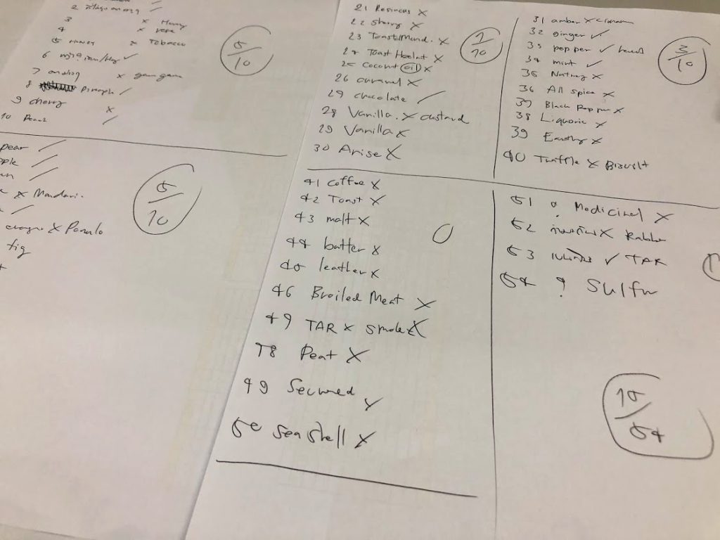 โอเค หลังจากชื่นชมเสร็จสรรพ ก็เลยทดสอบดมและบันทึกโน้ตกลิ่นโดยไล่ทำ ครั้งละ 10 กลิ่น ทั้งหมด 54 กลิ่น ซึ่งปรากฏว่า..